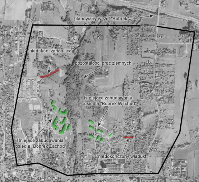 Ostatecznie na osiedlu Bobrek Wschód powstało 6 bloków mieszkalnych oraz garaże, natomiast na osiedlu Bobrek Zachód 18 bloków mieszkalnych. Nie wybudowano żadnych planowanych budynków użyteczności publicznej. Budowy szkół nie podjęto ze względu na niż demograficzny, który przewidywano w kolejnych latach (najdłużej przetrwała koncepcja budowy szkoły na osiedlu Bobrek Zachód w miejscu obecnego osiedla domków jednorodzinnych). Zarzucono także budowę węzła komunikacyjnego z priorytetową pod koniec lat 80. obwodnicą miasta. Komunikację miejską zapewnia obecnie linia autobusowa nr 10.